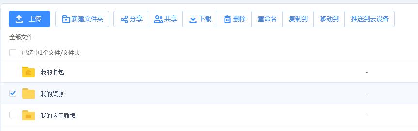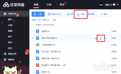 第三步,进入网盘后找到自己要下载的内容,点击该行或者选中选择框,然后点击本行中的下载图标或者点击屏幕上方的下载按钮,如下图所示:
