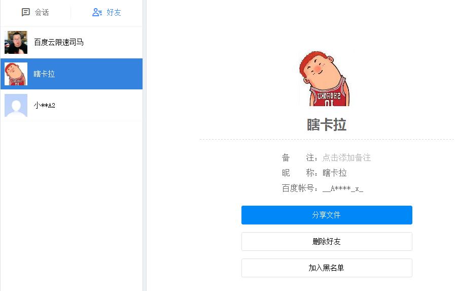 在分享界面有一个简易的好友管理界面,可以添加新的百度好友。