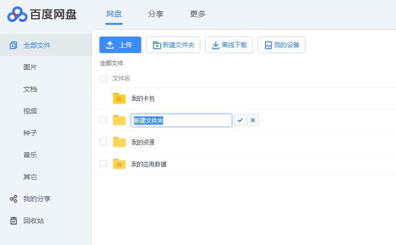 新登入百度网盘默认的界面是列表模式类似电脑资源管理器,新建个文件夹演示