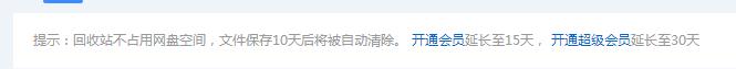 回收站内的东西会默认保存10天不删除,开通会员15天,超级会员30天,而且不占用网盘默认空间