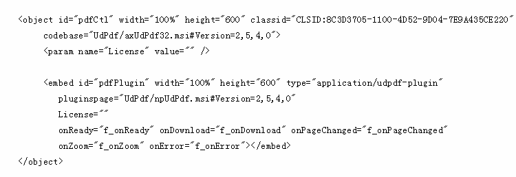 网页中嵌入控件您可以在网页中嵌入优道PDF阅读控件: