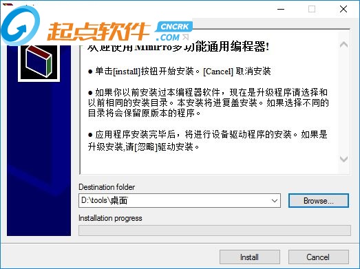 2、进入欢迎安装向导界面,可以对软件的安装位置进行选择,默认位置“D:\MiniPro”,点击Install;
