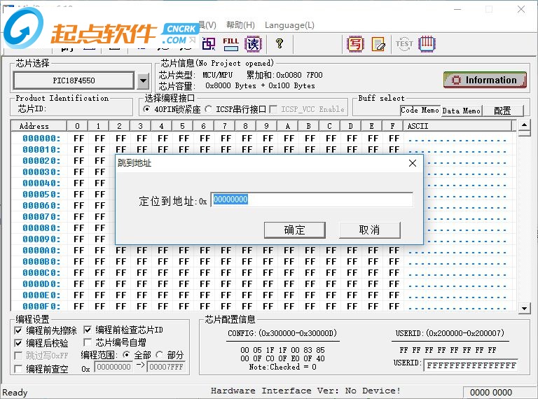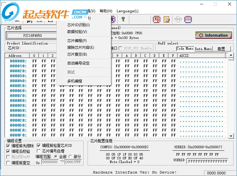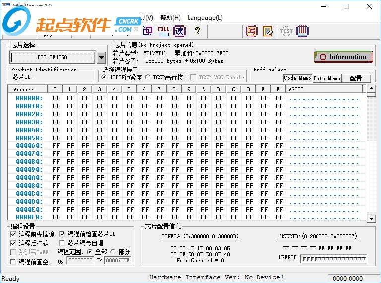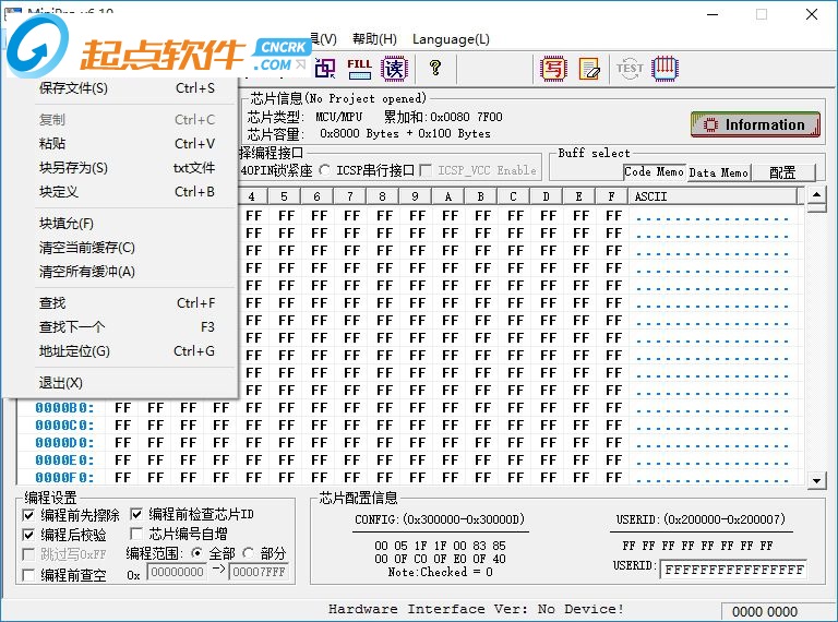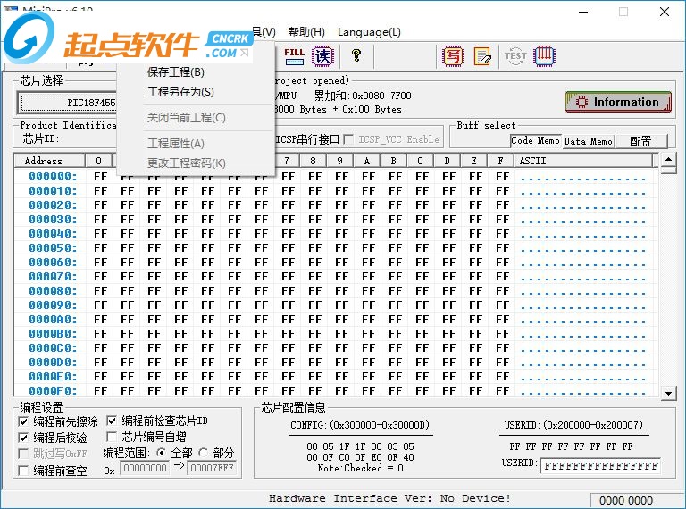 1、点击菜单的快捷图标即可进入软件的界面,包括了文件、芯片的选择、工程、操作、系统工具等;
