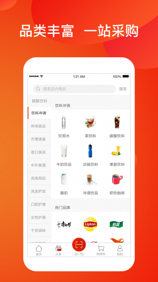 商品齐全,包括日用百货,饮料酒水,零食小吃,米面粮油,干货调味,家居用品,美容护肤等等,完全满足超市便利店的进货需求。