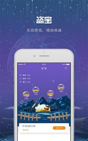 挖矿宝是一款能赚钱的区块链游戏。挖矿宝app为用户们提供了独一无二的数据加密,让每个用户的拥有私人的矿场采集,再通过采集的材料进行玩家间的交易从而获取收益。