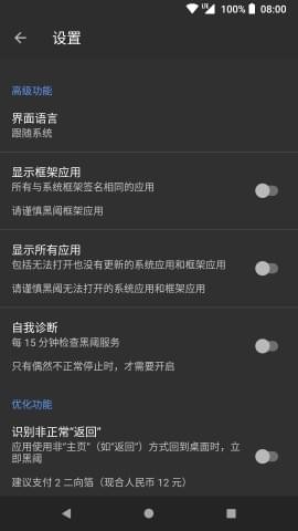 黑阈本着 KISS 哲学,即使不 Root 不解锁也能远离“全家桶”;同时,力求简单极致,自身仅不到 1M。
