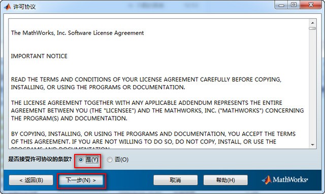 4、选择“是”接受许可协议;