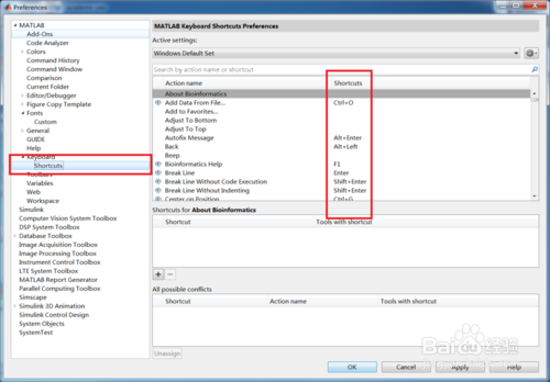 在“Keyboard”的“Shortcuts”中设置各种命令的快捷键,快捷键可以大大提高工作效率。