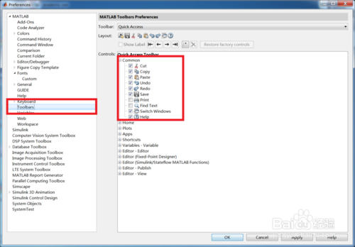 在“Keyboard”的“Toolbars”中添加自己常用的工具箱或者工具,这样也可以大大提高工作效率。