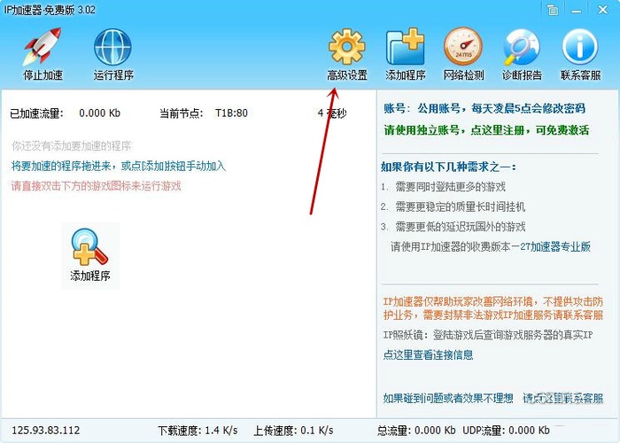ip加速器破解版是一款具有强大加速功能的免费ip加速器。ip加速器永久免费版采用独特的破解技术,提高网络速度的同时,解决延迟高、不稳定和反应慢等各种网络问题,可对多个网络游戏进行加速处理,让玩家彻底告别游戏卡顿,享受优质流畅的游戏体验。