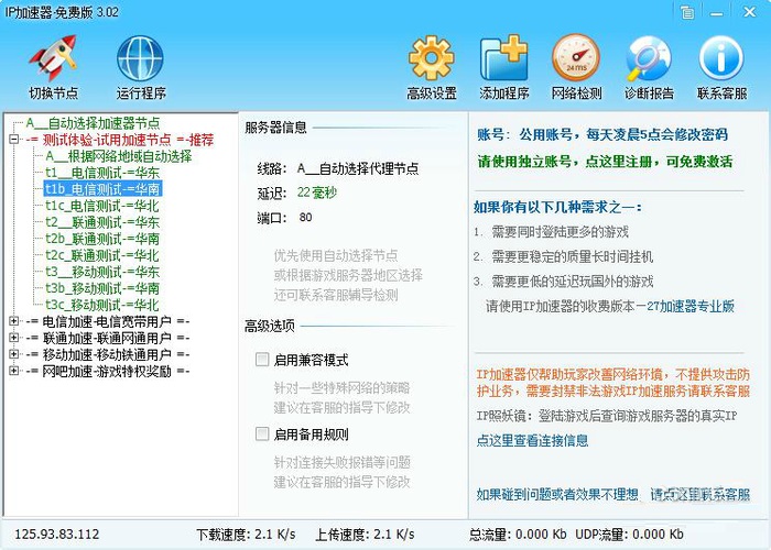 如果加速成功,但效果不理想,请在[高级设置]中选择其他线路;