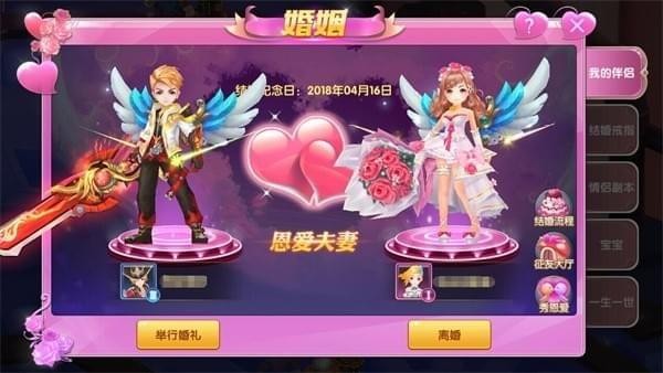 梦幻日系的风格,让人不禁对游戏里的角色萌生好感,便捷的组队模式也让玩家之间的互动更加方便。如果遇见喜欢的异性,可以试试与TA交往,也许就能在对的时间遇上对的人。玩家之间亲密度大于99点后即可进行表白成为热恋情侣,情侣之间亲密度达到520后,可以购买钻戒向心目中的TA进行求婚,以及与恋人秀恩爱。求婚成功后,玩家可举行盛大的婚礼,结婚后会激活戒指,并开放宝宝系统。