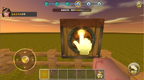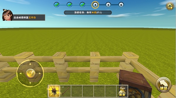 你当获得木头之后,即可点击【背包】→【制作】标签页合成工作台,工作台需要四块木板(任意树木皆可合成木板)