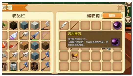 5.接着按ESC键,转换为“玩法地图”,在背包中用孔雀石块合成孔雀石,用来驯服野人就行了。目前只有普通野人、野人猎手、野萌宝可以驯服哦~
