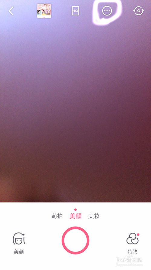 在拍照模式的右上角有一个省略号圆圈的图标。