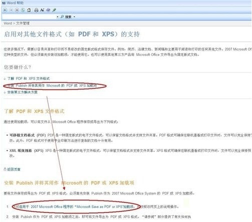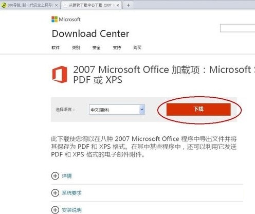 打开微软下载中心,你会看到关于“2007 Microsoft Office 加载项:Microsoft Save as PDF 或 XPS”的下载,点击下载即可,如下图所示: