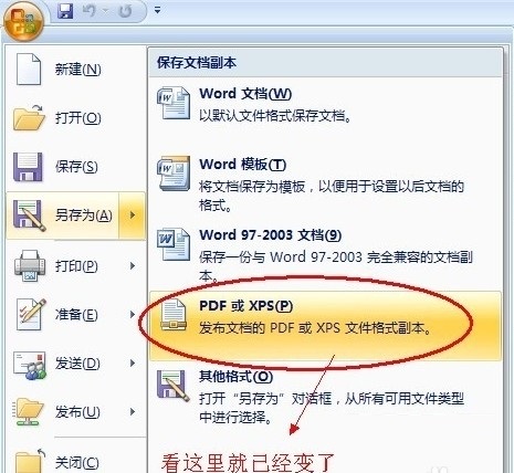 安装成功后,你重启一下你的word,你再次点击word最左上角office图标下拉菜单,另存为,你就发现跟刚才不一样了。如下图所示,点击就可以直接保存转换了。