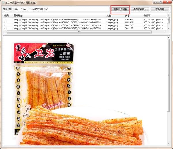 2、点击【获取图片列表】即可获取该商品的所有图片