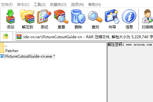 第一步,自然是从本站下载,注意压缩包的解压密码,和主程序,如下图:其中Picture Cutout Guide -cn.exe是主程序,另一个文件夹里面的内容是Picture Cutout Guide注册机。