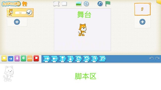 ScratchJr的定位则是在五到七岁年龄阶段的孩子。ScratchJr上都是图示,这让六七岁的孩子们更加容易理解。