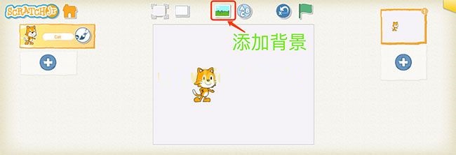 让我们让猫在舞台上跳舞,而不是单纯的白色背景。点击下图所示的图标