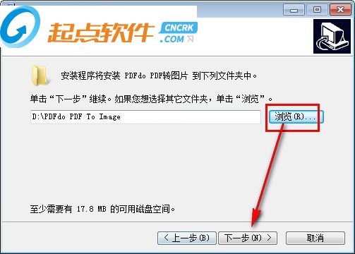 3、选择安装位置,默认位置“C:\ProgramFiles(x86)\PDFdo\PDFdoPDFToImage”,建议安装D盘,点击下一步;