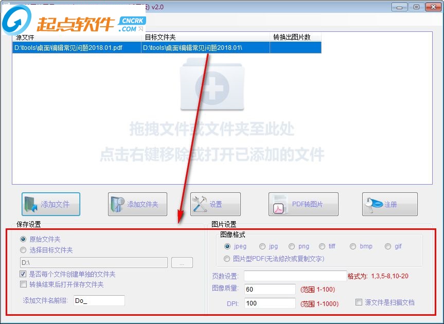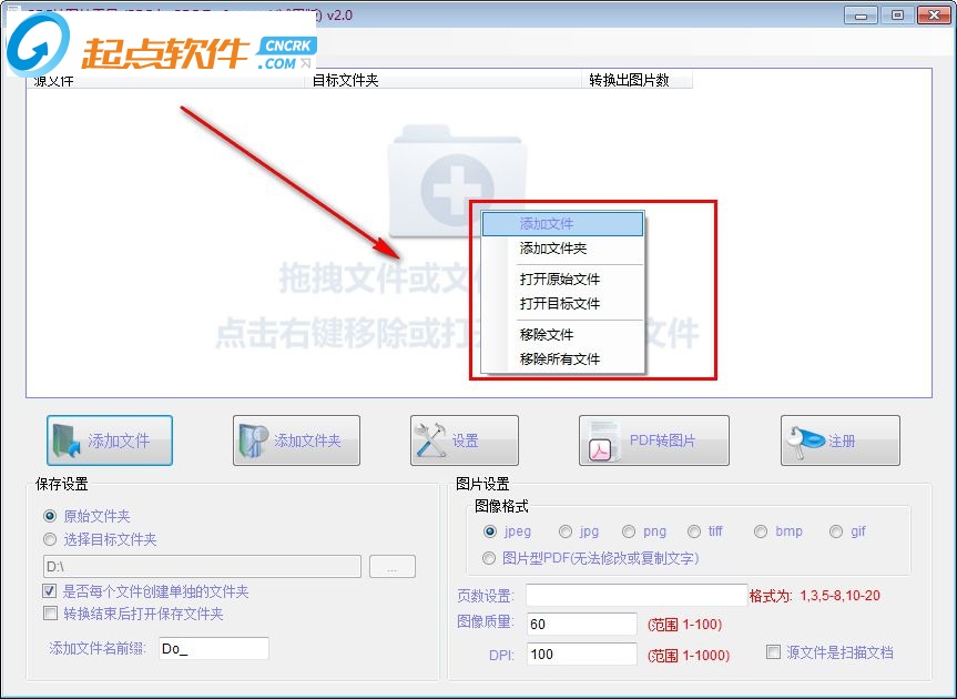 1 支持自定义转换页面范围。2 支持批量添加图片文件。