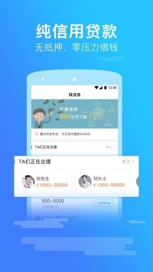 2. 操作简单:在线填写资料、发起申请、在线审批随时随地可借款;
