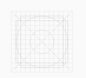 设计师可以直接将画好的图标路径复制到模版里,根据模板的辅助线,对图标 进行位置的调节,居中,四周等距,保证图标的统一。