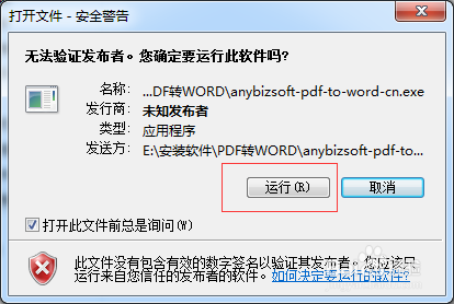 1、双击安装包后弹出一个警告窗口,点击“运行”即可