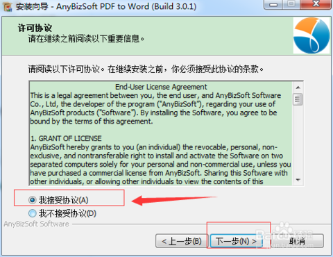3、然后要选择”我接受协议“,再点”下一步“继续安装