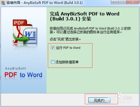 8、运行完后,勾选”运行"PDF to Word",然后点“完成”