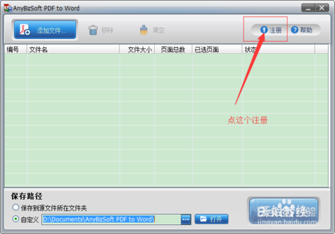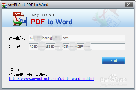 第二步:运行AnyBizSoft pdf to Word程序输入安装程序弹出的或者接下来的注册信息并点击注册按钮即可破解成功。