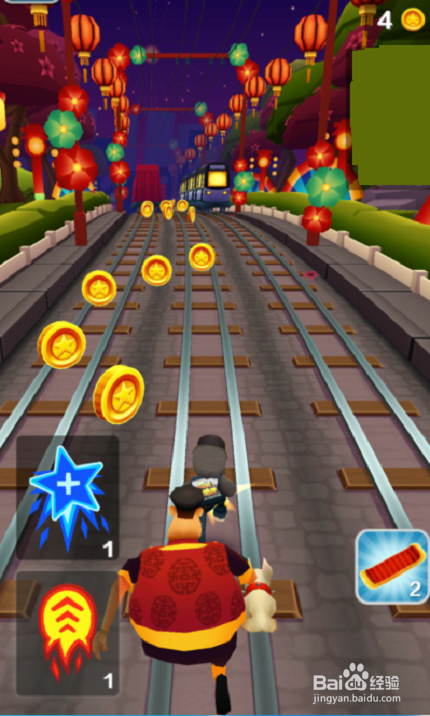 2、火车和跨栏在双道并排时,在缝隙处钻过,按下“滑板”的图标,骑上滑板前进,遇到撞击时迅速复活,可抵触一次碰撞。
