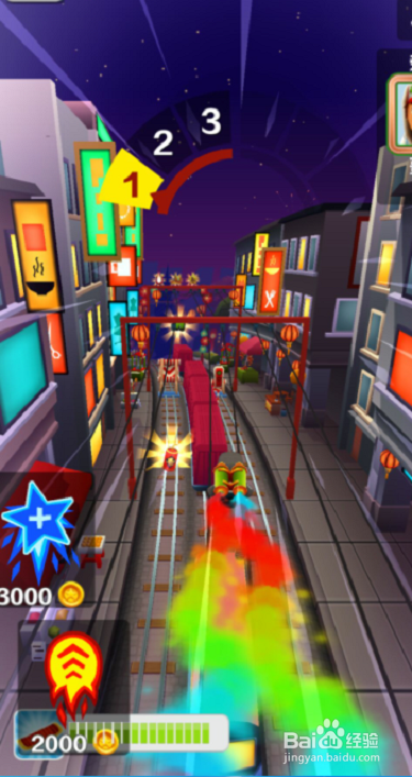 4、喷出彩气在空中滑行,上方是可持续的秒数,跑的分越高,后期继续加升,秒数也会进而延长。
