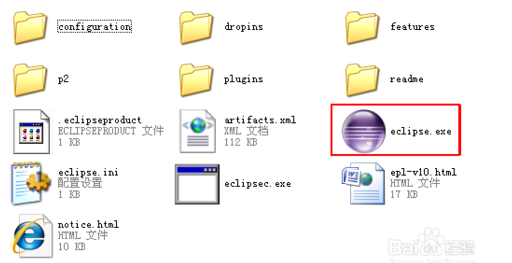 解压完毕后即可使用,进入文件夹,红框如图所示就是eclipse的启动程序