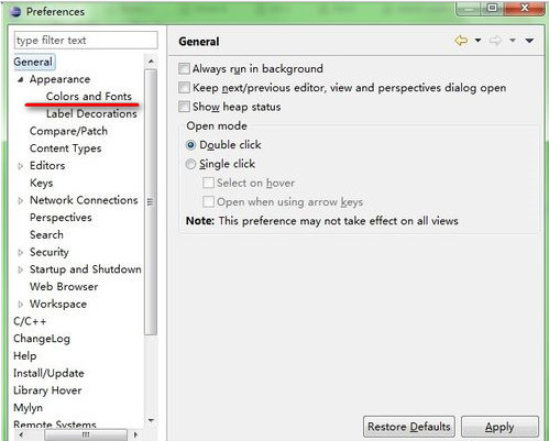 eclipse字体大小设置方法步骤一:打开eclipse,找到“window”--“preferences”,在左边的菜单栏中找到general,appearance在general展开后的第一行,点击展开appearance;