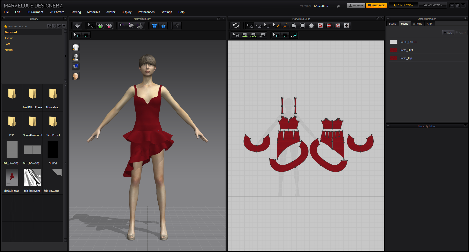 视窗视窗的构成里面。有制作板片的 2D 板片窗口,有将制作完的板片穿着给角色的 3D 服装窗口,有显示3D服装窗口跟2D板片窗口物体目录的,对象浏览器窗口,以及设置板片和服装属性的 属性编辑器窗口 。