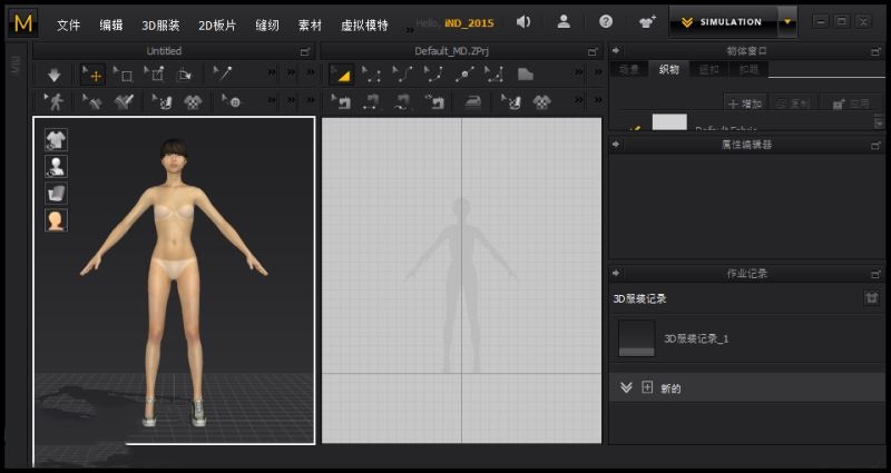 视窗的构成里面。有制作板片的 2D 板片窗口,有将制作完的板片穿着给角色的 3D 服装窗口,有显示3D服装窗口跟2D板片窗口物体目录的,对象浏览器窗口,以及设置板片和服装属性的 属性编辑器窗口 。