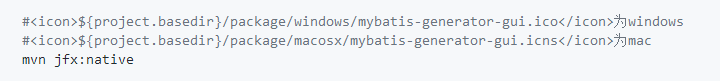 如果不想打包后的安装包logo为Java的灰色的茶杯,需要在pom文件里将对应操作系统平台的图标注释放开