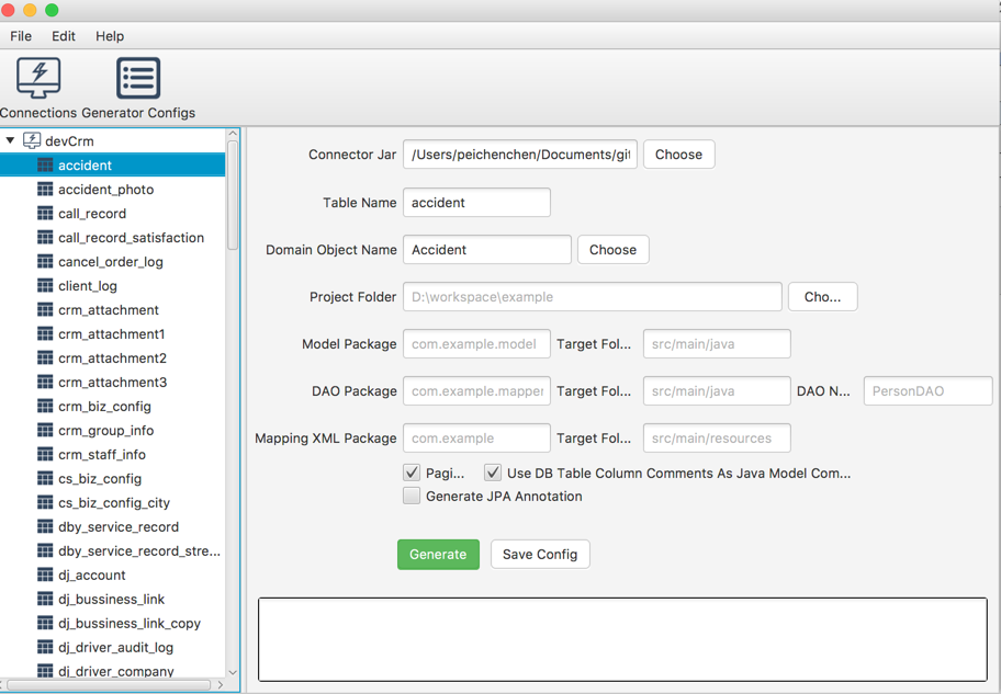保存数据库连接与Generator配置,每次代码生成轻松搞定