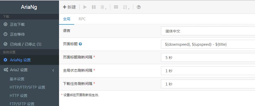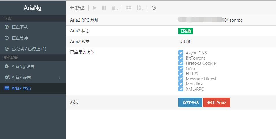 这里的篇幅比较少,因为AriaNg上手即用,无非是自己的慢慢研究的调教什么的,没什么可大书特书的。可以查看Aria2的状态