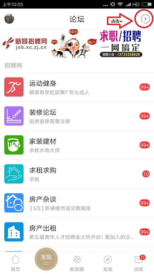 一、添加自己心仪的版块的方法1.发帖界面点击“+”号(也可以通过点击下方“发现更多”实验同样功能)