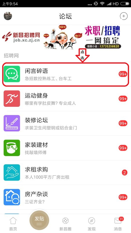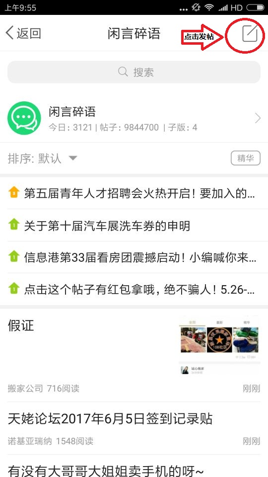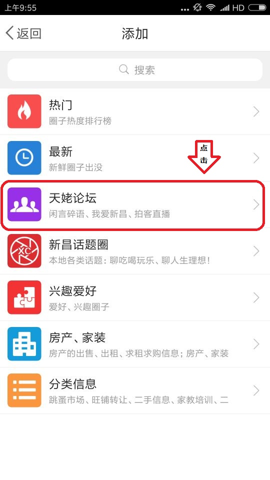 2.选择大分类下的版块,这里以寻找闲言碎语为例,点击 天姥论坛