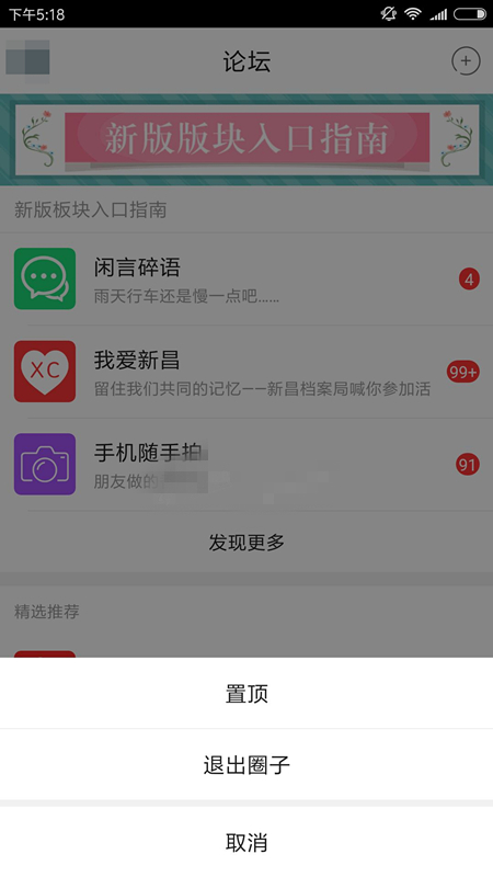 (ps 如果想删除或者顶置相关板块,只要长按那个版块就可以了)