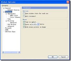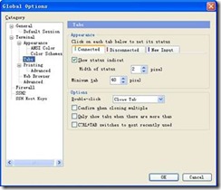 从Secure5.0以后,增加了Tabs(标签)选项,多个连接可以在同一个窗口下打开,类似IE7.0的风格。将Double-click 选项修改为 Close Tab,双击标签可关闭连接窗口。