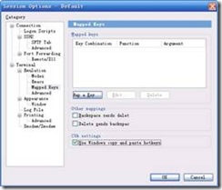 Options => Session ptions => Terminal => Mapped keys => Map a key,出现Map Key 对话框