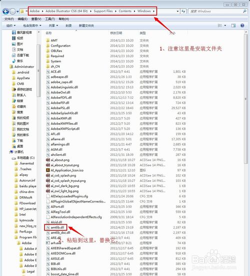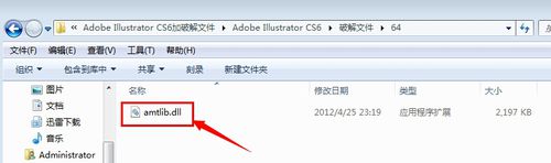 找到 Illustrator安装目路,把刚才复制的amtlib.dll粘贴进来,替换原有的