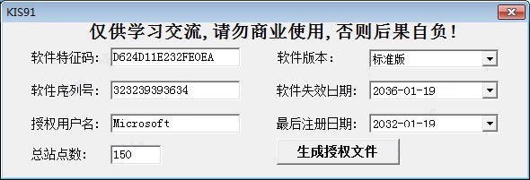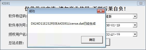 8、打开软件包中的金蝶V9.1 sp1注册机,将软件特征码复制到注册机中,将授权用户名改成你安装软件时使用的用户名,点击生成授权文件。