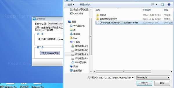 10、来到软件注册界面,点击引入license文件,找到软件包中生成的.dat文件,点击打开。